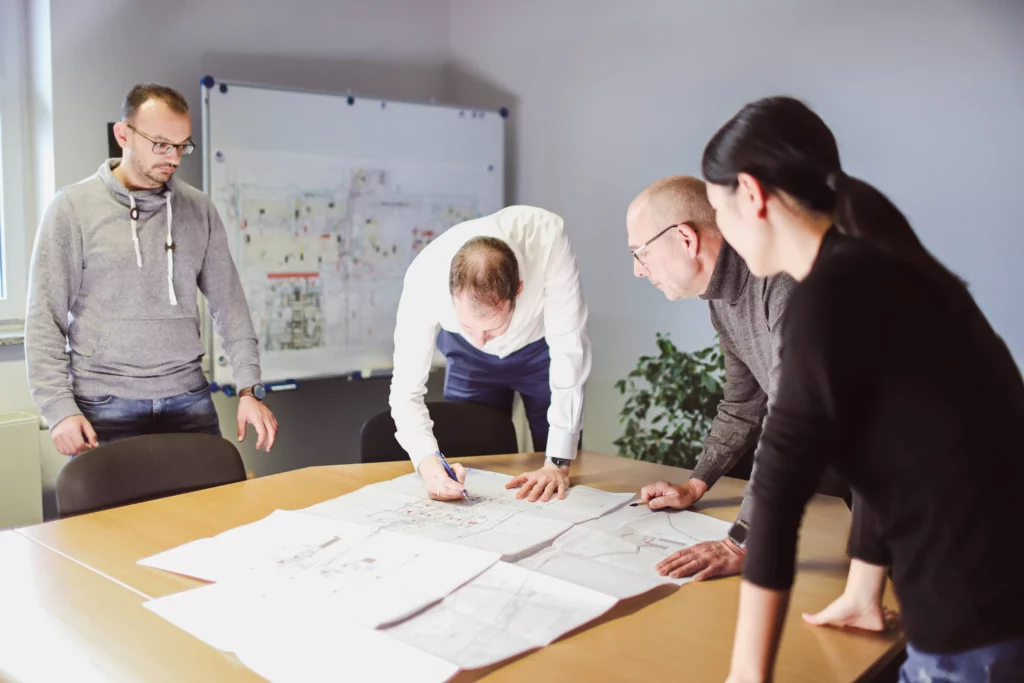 Unsere hoch motivierten Mitarbeiter-/innen – bestehend aus erfahrenen Ingenieuren, Technikern und Zeichnern – bilden das Fundament für eine erfolgreiche Planung und Beratung. Der aktive Austausch von Fachwissen und unser Teamgeist ermöglichen es uns, stets kundenorientierte und optimale Lösungen zu entwickeln.